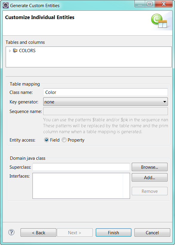 Customize Default Entity Generation