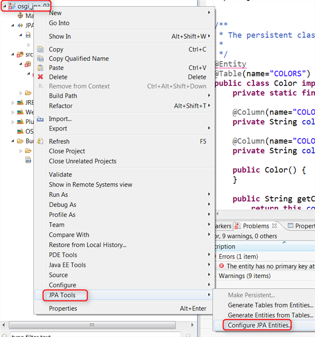 Right-click osgi_jpa project (the one we created above)