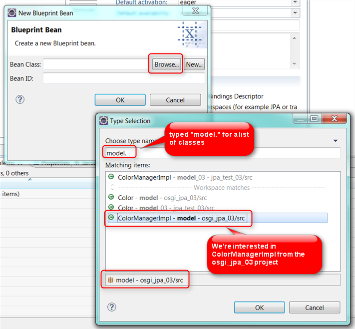 click Browse and type in "model." to get a list of classes
