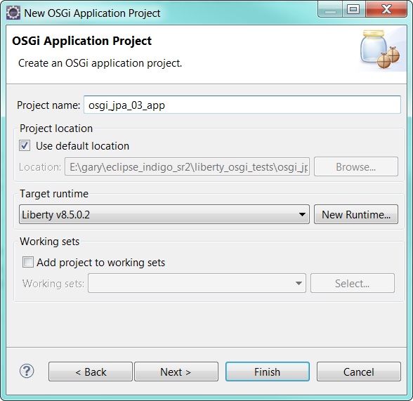 Project name: osgi_jpa_o3_app (note: adding an "app" postfix helps identify)