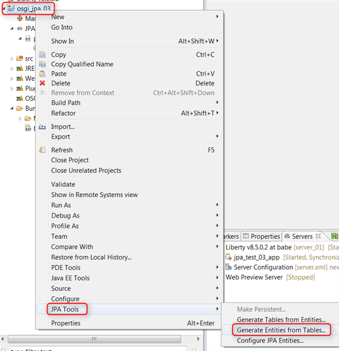 Select the osgi_jpa project we created above