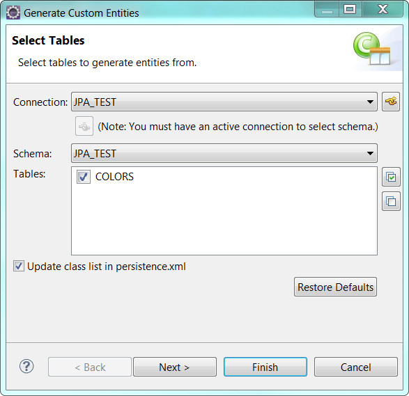 5) Create JPA Entities from Tables