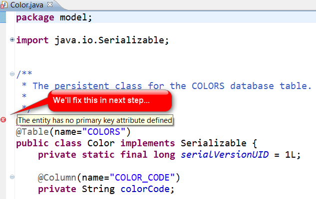 Wizard leaves Java entity with a minor error