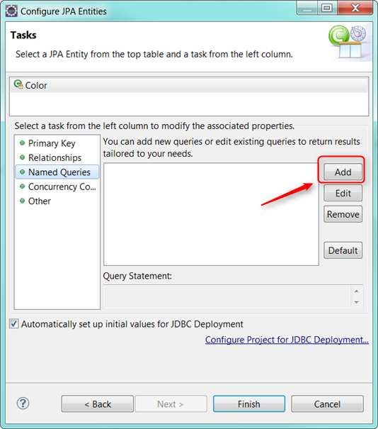 The named query, "getColor" was set in the Color entity via JPA "Entity Configuration"