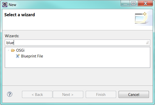 (top level menu) File -> new -> other -> Wizards, type "osgi"