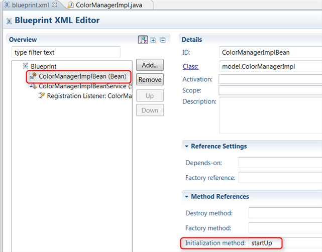 9) Create a blueprint-defined ColorManagerImpl bean and service
