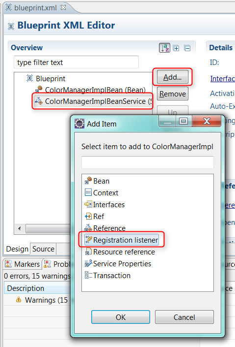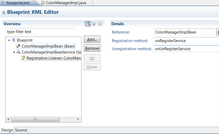 Select ColorManagerImpleBleanService -> add -> REgistration listener