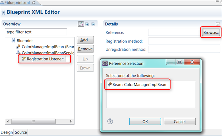 Select Registration Listener -> Reference, click Browser