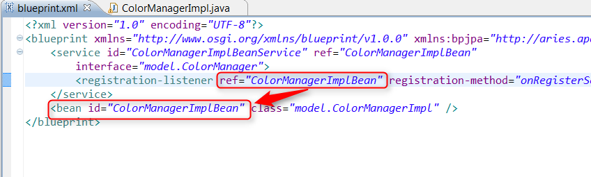 Registration listener references ColorManagerImplBean ID